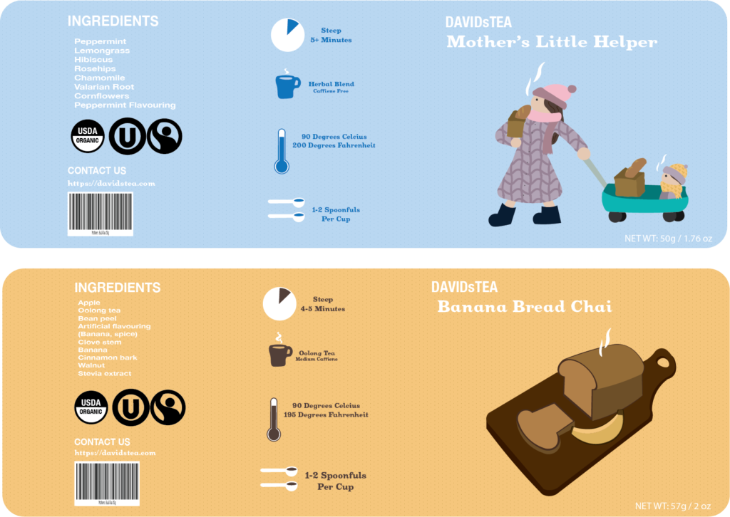 Stickers created for a packaging project focused on improving packaging of an existing brand